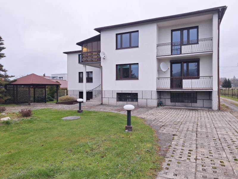 Do sprzedania nieruchomość gruntowa budowlana zabudowana budynkiem mieszkalnym wolnostojącym, dwukondygnacyjnym, o powierzchni użytkowej ok. 220 m2 położona w miejscowości Czaniec, Gmina Porąbka, woj. śląskie. Dom posadowiony jest na działce o powierzchni ok. 987 m2, bezpośrednio przy drodze powiatowej. Budynek z lat 80-tych, dwukondygnacyjny, w całości podpiwniczony (kotłownia, pralnia, pomieszczenia gospodarcze), z garażem w bryle budynku, wykonany z dużą starannością, na bieżąco remontowany i konserwowany. Na I kondygnacji znajduje się hall, cztery komfortowe i przestronne pokoje, w tym salon z wyjściem na balkon, kuchnia w zabudowie, wyposażona, łazienka z WC oraz dodatkowo osobne WC. Na II kondygnacji znajduje się hall, cztery przestronne i jasne pokoje, w tym jeden z wyjściem na balkon, pomieszczenie przeznaczone pod kuchnie, łazienka połączona z WC, wyjście na taras. Wewnątrz znajdują się schody wykonane z lastryka, w pomieszczeniach panele podłogowe, płytki oraz wykładzina. Stolarka okienna PCV, drzwi zewnętrzne drewniane. Budynek wykonany metodą tradycyjną, z cegły, z jednej strony ocieplony styropianem, pokryty tynkiem akrylowym. Dach płaski, pokryty papą, ocieplony. Budynek wyposażony w instalację wodną, elektryczną, gazową, kanalizacyjną. Ogrzewanie budynku węglowe, istnieje możliwość podłączenia pieca gazowego. Dodatkowo nieruchomość posiada także własną studnię.