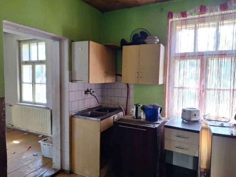 W budynku znajdują się następujące pomieszczenia przedsionek, kuchnia, dwa pokoje, łazienka, piwnica, strych przeznaczone do generalnego remontu.