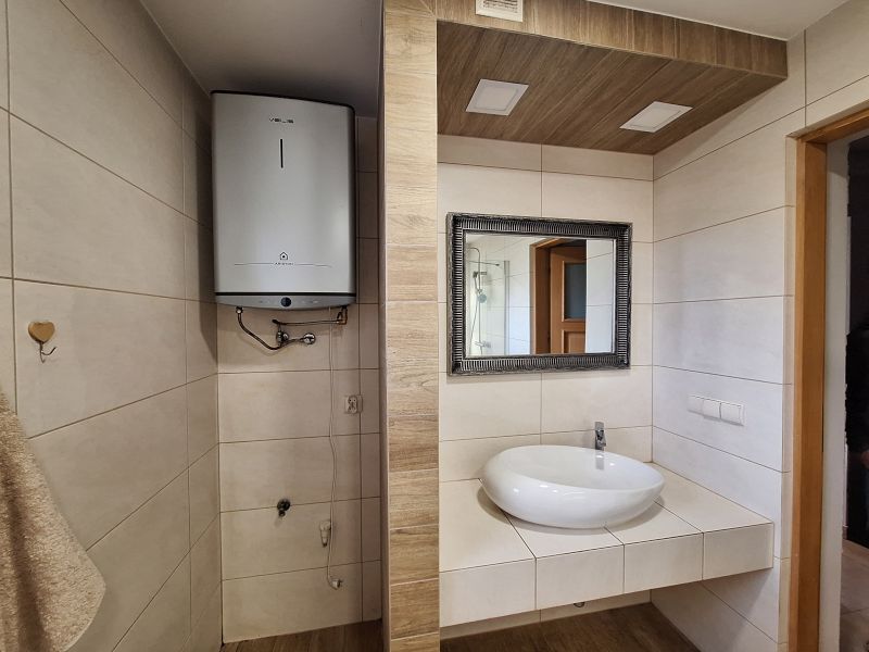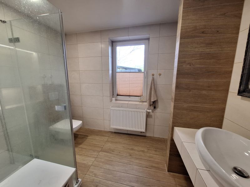 WYŁĄCZNOŚĆ. Do sprzedania nieruchomość gruntowa budowlana zabudowana budynkiem mieszkalnym wolnostojącym, dwukondygnacyjnym, o powierzchni użytkowej ok. 70 m2 położona w Kętach, Gmina Kęty, woj. małopolskie. Dom bliźniaczy, posadowiony jest na działce o powierzchni ok.218 m2, bezpośrednio przy drodze asfaltowej gminnej. Budynek z lat 90-tych, dwukondygnacyjny, niepodpiwniczony na bieżąco remontowany i konserwowany. W 2014 roku został wykonany generalny remont. Na I kondygnacji znajduje się hall, kuchnia połączona z pokojem dziennym i wyjściem na ogródek, łazienka z WC. Na II kondygnacji znajduje się hall, dwa jasne pokoje (salon z wyjściem na balkon oraz sypialnia). Stolarka okienna PCV, drzwi zewnętrzne drewniane. Budynek wykonany metodą tradycyjną, z pustaka, ocieplony styropianem grafitowym 15 cm). Dach płaski, pokryty papą oraz blachą trapezową. Budynek wyposażony w instalację wodną, elektryczną, gazową, kanalizacyjną. Ogrzewanie budynku gazowe- kocioł dwufunkcyjny, w łazience bojler elektryczny.