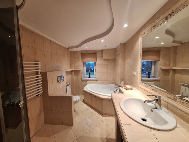 Do sprzedania nieruchomość gruntowa budowlana zabudowana budynkiem mieszkalnym wolnostojącym, dwukondygnacyjnym, o powierzchni użytkowej ok. 220 m2 położona w miejscowości Czaniec, Gmina Porąbka, woj. śląskie. Dom posadowiony jest na działce o powierzchni ok. 987 m2, bezpośrednio przy drodze powiatowej. Budynek z lat 80-tych, dwukondygnacyjny, w całości podpiwniczony (kotłownia, pralnia, pomieszczenia gospodarcze), z garażem w bryle budynku, wykonany z dużą starannością, na bieżąco remontowany i konserwowany. Na I kondygnacji znajduje się hall, cztery komfortowe i przestronne pokoje, w tym salon z wyjściem na balkon, kuchnia w zabudowie, wyposażona, łazienka z WC oraz dodatkowo osobne WC. Na II kondygnacji znajduje się hall, cztery przestronne i jasne pokoje, w tym jeden z wyjściem na balkon, pomieszczenie przeznaczone pod kuchnie, łazienka połączona z WC, wyjście na taras. Wewnątrz znajdują się schody wykonane z lastryka, w pomieszczeniach panele podłogowe, płytki oraz wykładzina. Stolarka okienna PCV, drzwi zewnętrzne drewniane. Budynek wykonany metodą tradycyjną, z cegły, z jednej strony ocieplony styropianem, pokryty tynkiem akrylowym. Dach płaski, pokryty papą, ocieplony. Budynek wyposażony w instalację wodną, elektryczną, gazową, kanalizacyjną. Ogrzewanie budynku węglowe, istnieje możliwość podłączenia pieca gazowego. Dodatkowo nieruchomość posiada także własną studnię.