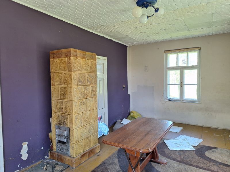 W budynku znajdują się następujące pomieszczenia przedsionek, kuchnia, dwa pokoje, łazienka, piwnica, strych przeznaczone do generalnego remontu.